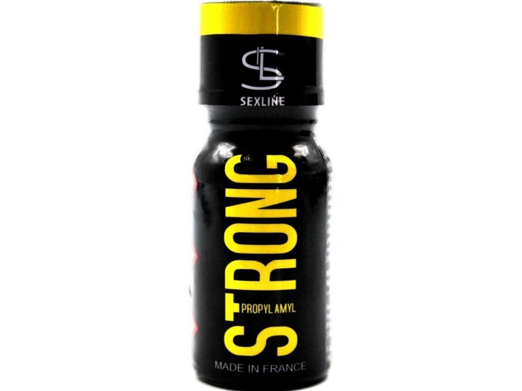 Poppers STRONG 15 ml v kompaktnom balení. Určený výhradne na technické účely.