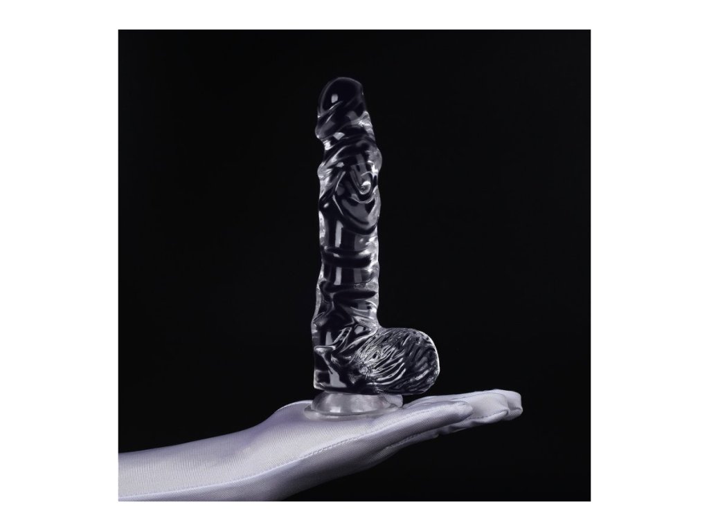 Priehľadné dildo s výrazne vyvýšeným povrchom.